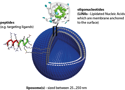 Drug-delivery systems We work on delivery of oligonculeotides based on lipid nanoparticles such as liposomes and take advantage of the membrane anchoring ability of lipidated nucleic acids (LiNAs)developed in our group.